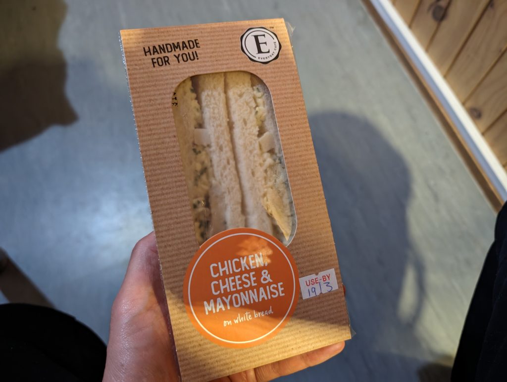 売店には冷凍の肉、冷凍のパン、くだもの、調味料、ヨーグルト、アイス、サンドイッチなどが売っているので、共用のキッチンを使って調理をすることもできますし、サクッとサンドイッチで済ませることもできます。