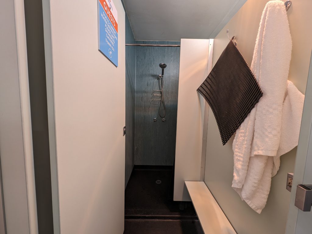 シャワーは全部で3つありますが、ドミトリーとエコノミーの客全員が使用するため夕方以降は混雑しています。