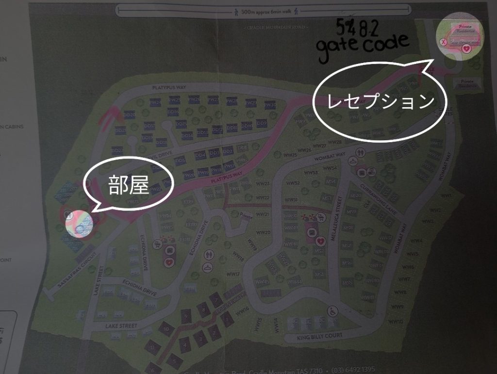 クレイドルマウンテンビジターセンターからホテルのレセプションまでは徒歩7分ほどですが、ホテルの敷地がキャンプ場のような広さなので寝泊まりする部屋の場所によってはホテルからクレイドルマウンテンビジターセンターまで倍以上の時間がかかることがあるので注意が必要であります。