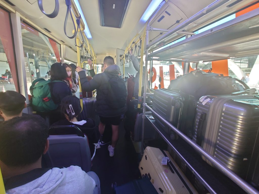ターミナル間のシャトルバス(T-bus)はニコニコ0円で利用可能ですが、第1ターミナルから第2ターミナルまで「出発してから」15分以上かかります。