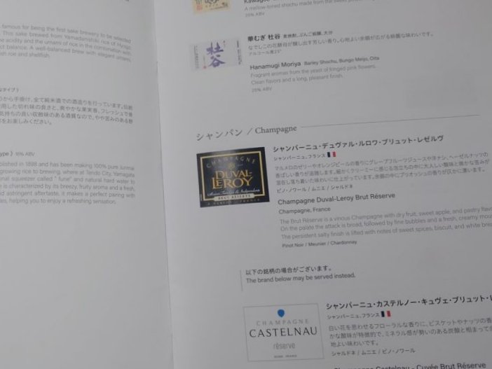 食事は残念ながらラウンジで済ませてあるので軽くシャンパンだけ頂き歯磨きをして寝ることとします。本日のシャンパンはDUVAL-LEROYであります。