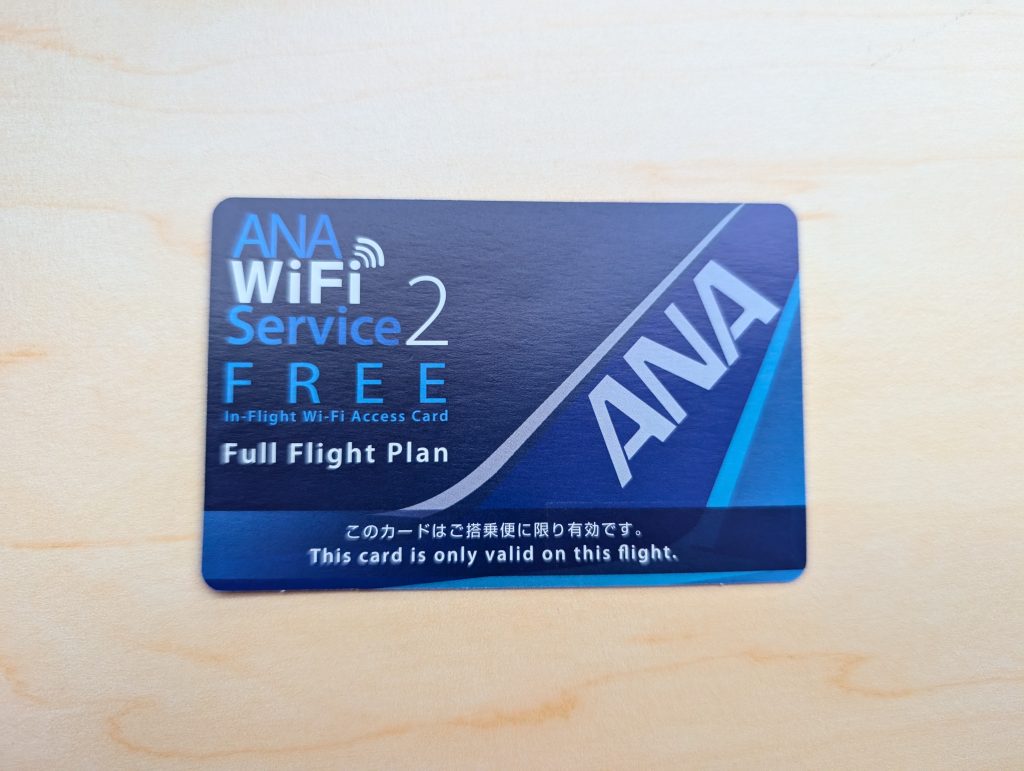 この機内Wi-Fi用カードはすでに座席のテーブルに置いてある場合とCAさんが離陸前に配る場合と離陸後に配る場合があります。