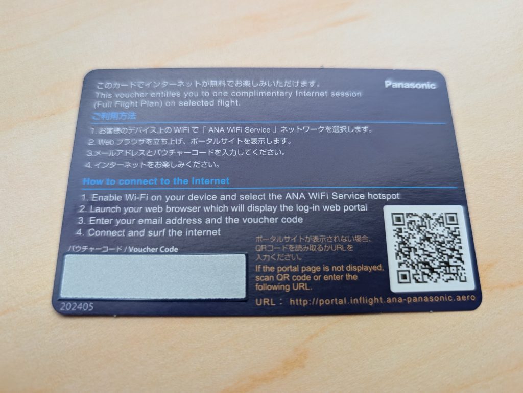 機内Wi-Fiカードの裏面のバウチャーコードが書いてある部分はシルバースクラッチになっていて、ここを削ってコードを確認するわけですが、この削りカスはどうしたらいいのか非常に困ります。