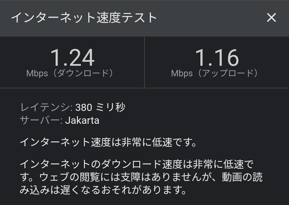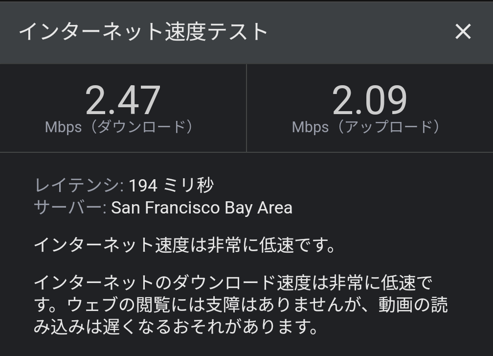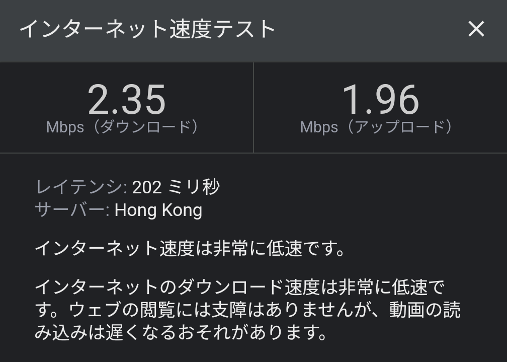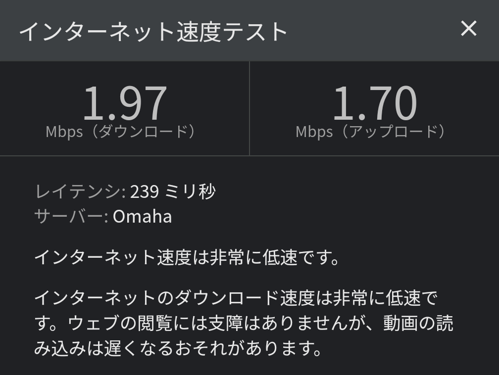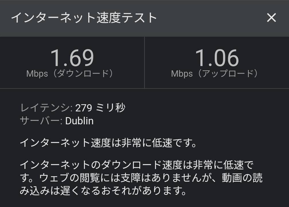明らかに速度が遅いという印象で、1メガに満たないこともありました。