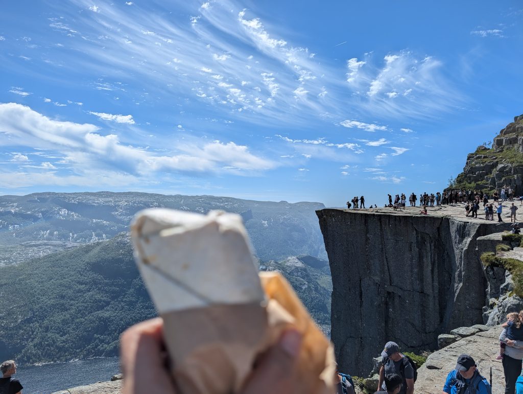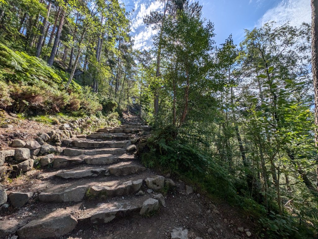 道中は急登のところでかなり息切れしますが、ペースを守って1時間10分で目的地「プレイケストーレン」に到着です。
