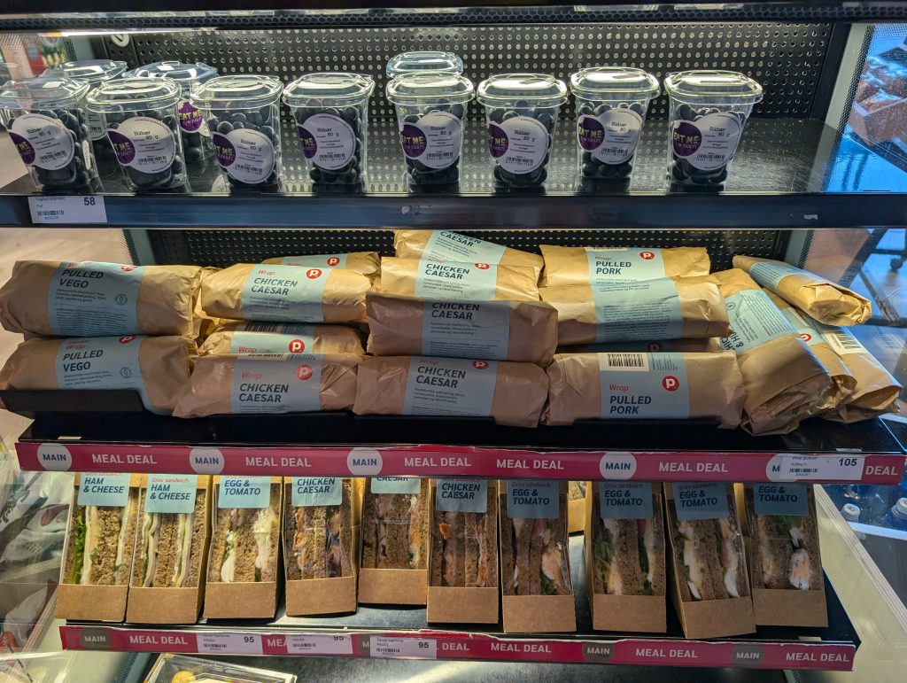 店なんてどこも開いていないと思っていたからホテルでパンを頂いてきたのですが、せっかくオープンしているならということでラップサンドと水、カフェラテを仕入れます。