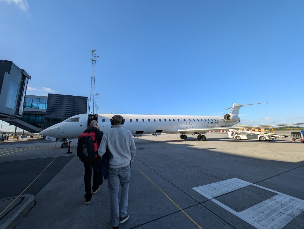 そしてわたしの乗る昨日と同じ飛行機シティジェットCRJ900は乗客もわずかで運よく定時で離陸。