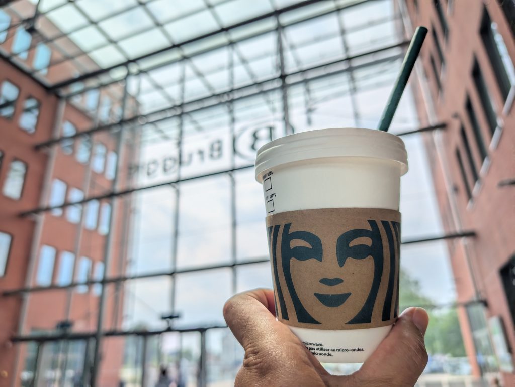 汗だくに輪をかけるかのごとく急いで駅まで行きましたが、ちょっと欲をかいた1本早い電車には間に合わなかったので、駅ナカのスターバックスで涼みながら次の電車を待って乗り込みます。
