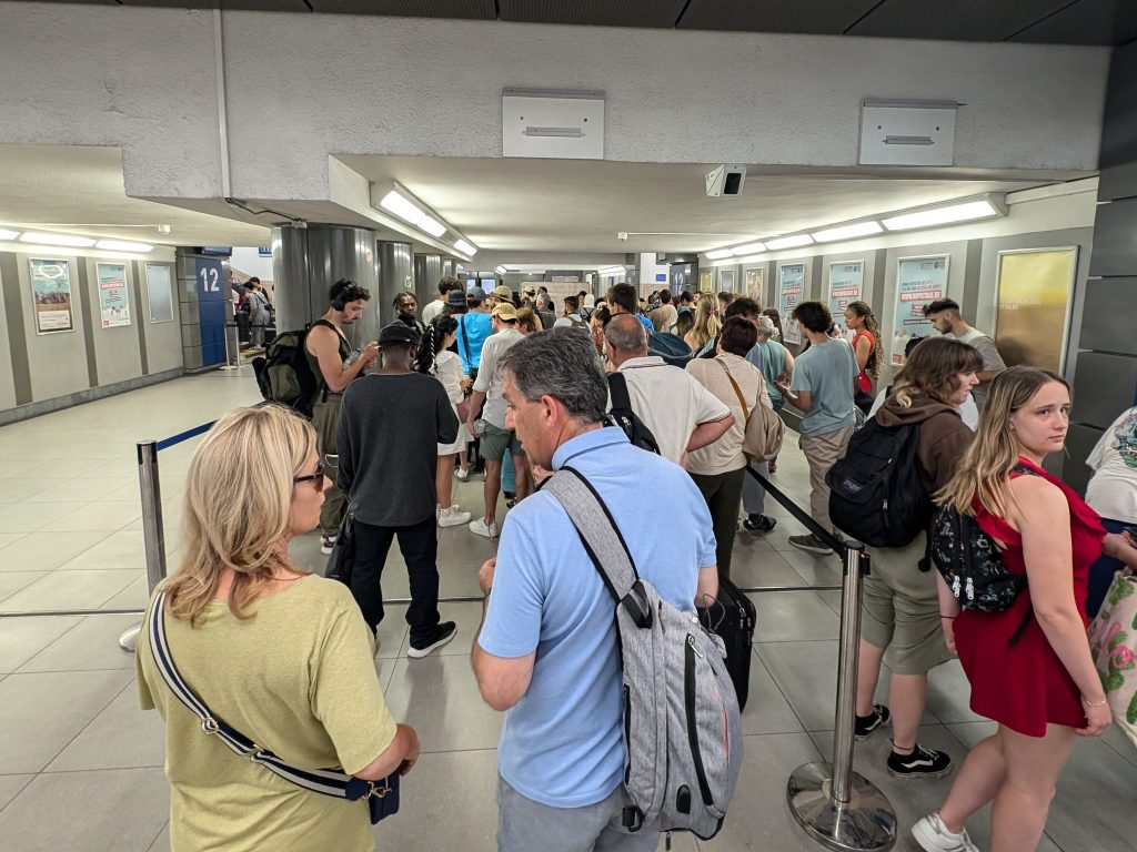 サッカーのユーロカップが行われていたということで事前案内が来ていた通り、早朝から手荷物検査は大混雑であります。