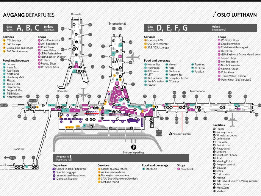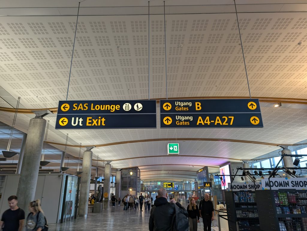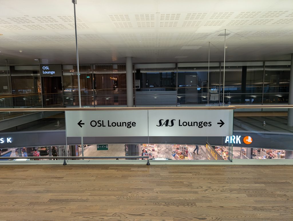 国際線のオスロラウンジとSASラウンジはどちらも同じ場所(スターバックスの上)にあり看板も出ているので迷うことはありません。