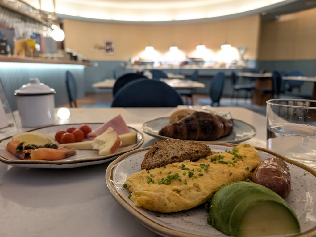 そして朝食はブッフェとは別にメイン料理をオーダー(料金に含まれています)するシステムであり、わたしはオムレツにソーセージとアボカドをチョイスしました。